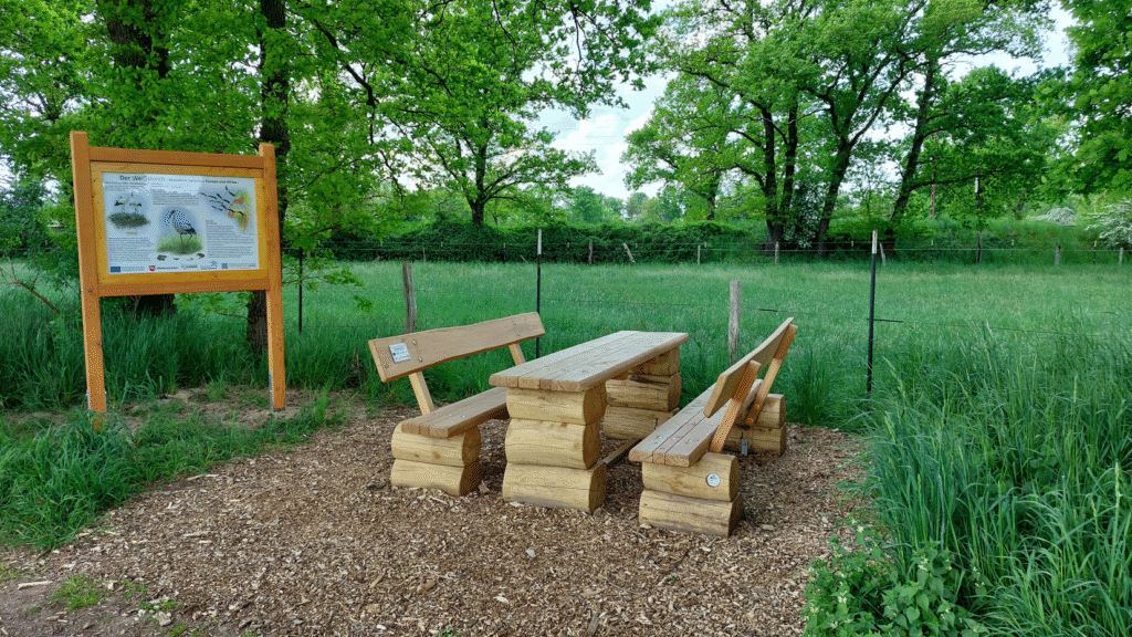 Am 26.09.2025 wurde das Projekt „Natur in Lehrte bei Rad- und Wandertouren entdecken“ offiziell abgeschlossen und damit die Sitzgruppen inklusive der aufgestellten Infotafeln für naturliebhabende Rad- und Wanderleute eröffnet. Von den etwa 46.000 Euro Nettogesamtkosten des Projektes wurden 36.620 Euro über das LEADER-Förderprogramm gefördert. An der geforderten öffentlichen Kofinanzierung waren sowohl die Stadt Lehrte als auch die Region Hannover zu jeweils 50 % beteiligt. Als eines von fünf verfolgten Startprojekten war dieses Vorhaben eines der ersten, welche die LAG Aue-Wulbeck beschloss. Weitre Infos und alle Standorte finden Sie hier.